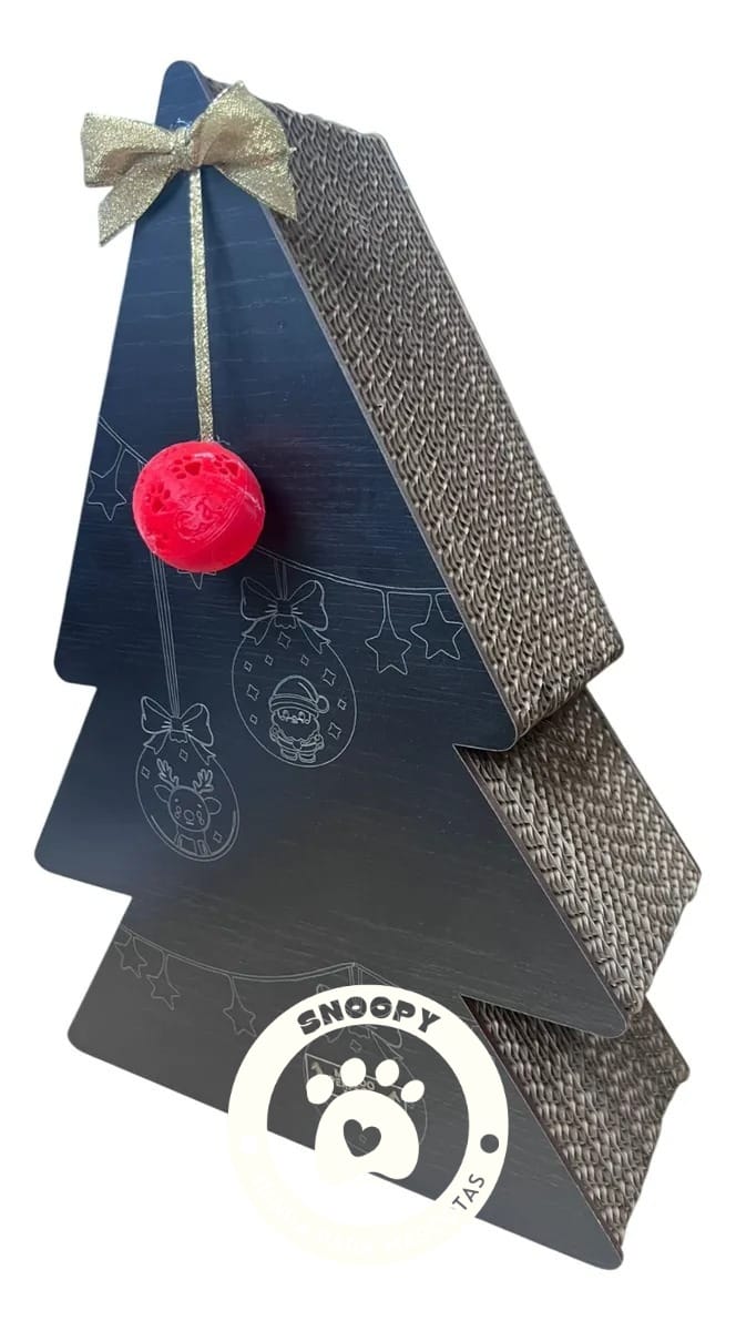Este árbol navideño interactivo combina decoración festiva con entretenimiento para tu mascota. Incluye una pelotita especial para gatos (o perros pequeños) colgando desde la parte superior, ideal para jugar, rascar y liberar energía.