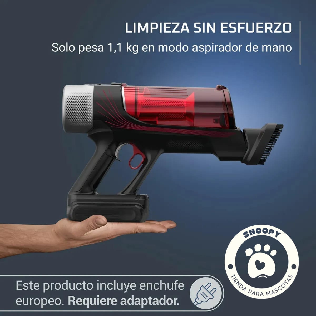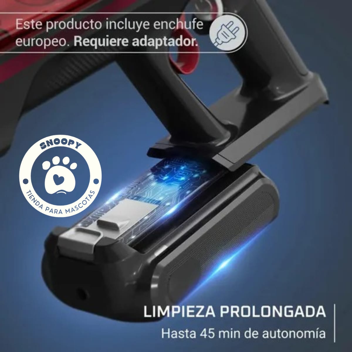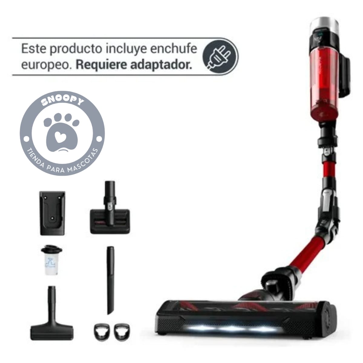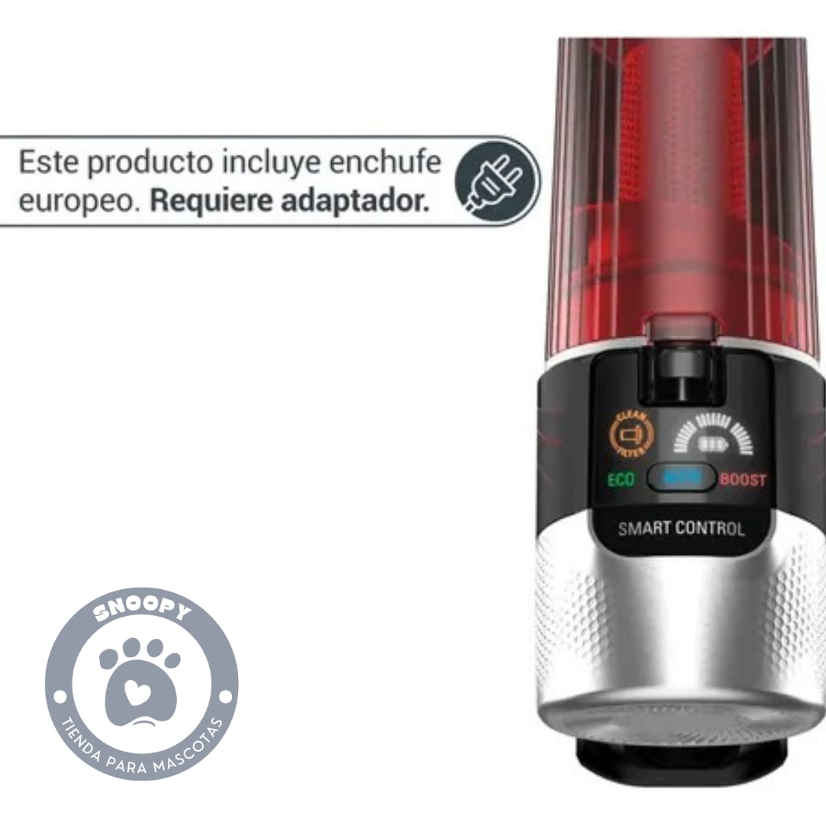 Requiere adaptador para enchufe europeo (no incluido).