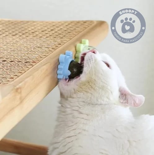 Dale a tu gato el entretenimiento y bienestar que se merece con este innovador juguete con catnip natural. Su diseño en forma de patita u orejitas lo hace irresistible, y además cuenta con una base adhesiva para que puedas colocarlo fácilmente en paredes, muebles o cualquier superficie lisa.